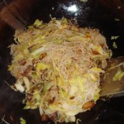 湖头米粉、鱿鱼干、腊肉、包菜、蒜。