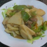 土豆、青椒、胡萝卜、葱、姜、蒜、猪肉、十三香、生抽、老抽、盐、鸡精。