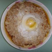 五花肉、鱿鱼、咸蛋、生抽、糖、生粉、盐、油。