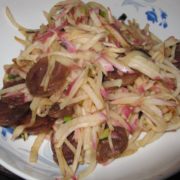 水萝卜、腊肠、食用油、小葱、鸡精。