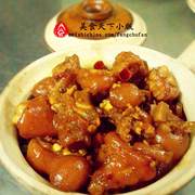 猪蹄、姜块、葱段、干辣椒、香叶、八角、桂皮、花椒、金橘油、料酒、美极酱油、盐、郫县豆瓣。