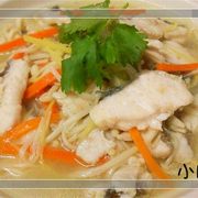鲩鱼、金针菇、蛋清、胡萝卜条、姜丝。