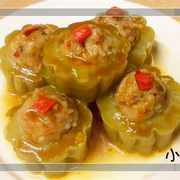 苦瓜、猪肉、水发虾米、水发香菇、蛋清、姜米、葱末、淀粉。