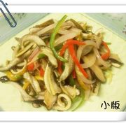 鳝鱼、青椒、红椒、水发香菇、姜丝、洋葱、料酒、淀粉水、香油、鸡粉、胡椒粉、盐。