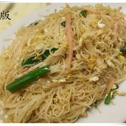 东莞米粉、肉饼丝、火腿丝、鸡蛋、葱段、豆芽、盐、味精、老抽。