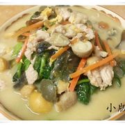 菠菜、胡萝卜、草菇、皮蛋、瘦肉盐、味精、白沙糖、三花植脂淡奶。