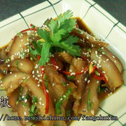 卤猪脖皮、香菜、蒜、红尖椒、白芝麻、盐、味精、鸡精、味极鲜酱油、花椒油、辣椒油。