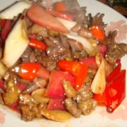 鸡杂、葱、大蒜、泡萝卜、泡红椒、泡豆角。