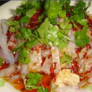 坨粉、生抽、醋、糖、大蒜水、胡椒粉、香菜、鹽、芝麻油、花椒油、紅油、葱花、花生米。