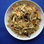 白豆腐干、千张皮、油豆腐果、干香菇、干木耳、黄花菜、水芹菜、胡萝卜。