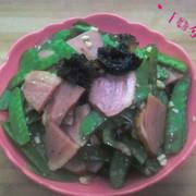 鸭胸肉、荷兰豆、木耳、香油、蒜、酱油、盐、鸡精、白糖。