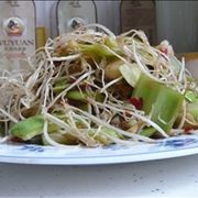 卤金钱腿、大蒜、青椒、黄椒、生抽、盐、鸡精。
