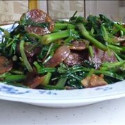 野芹菜、香肠、干辣椒、盐、鸡精。