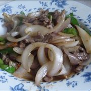 牛肉、洋葱、青椒、盐、生抽、鸡精。