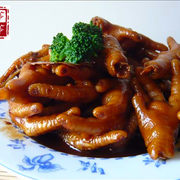 鸡脚、生姜、大蒜子、黄椒、八角、香叶、盐、生抽、老抽、米酒、鸡精。