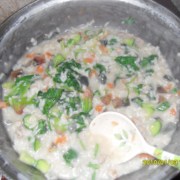 皮蛋、胡萝卜、黄瓜、菠菜、香菜、鸡腿、酱油、鸡精、酒、色来油、盐、糖。