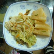 猪肉、胡萝卜、西红柿、葱、鸡蛋、面粉、盐、鸡精、白胡椒粉、油。