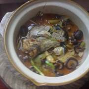 鱼头、涡笋、冬笋、香菇、生姜、蒜片、干辣椒、豆瓣酱、韩式辣椒酱。