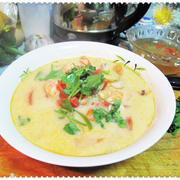 水、鲜草菇、大虾、小西红柿、有心冬阴功酱、鱼露/味露、TCC椰浆/椰奶、青柠檬、姜、家乐浓汤宝。