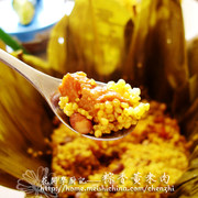 干粽叶、黄米、花豇豆、猪肉、葡萄干、葱、姜、生抽、老抽、料酒、蚝油、醋、十三香、胡椒粉、盐。