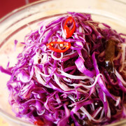 紫甘蓝、粉丝、木耳、蒜、杭椒。