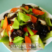 西芹、香菇、木耳、胡萝卜。