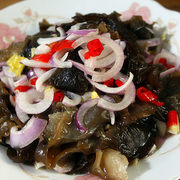 洋葱、木耳、泡海椒、野山椒、盐、味精、香油。
