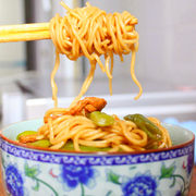 豆角、瘦肉、面条、老姜、大葱、食用油、老抽、盐、鸡精。