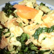 米粉、澄粉、生粉、肉片、鸡蛋、香葱、香油、生抽、菠菜。