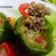 猪肉糜、青椒、胡萝卜、生姜、淀粉、盐、糖、鸡精、料酒。