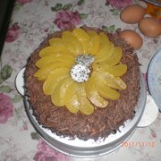 桃罐头、巧克力、超市买的方糕。