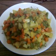 土豆、胡萝卜、青椒、咖喱粉、糖、盐、葱、姜。