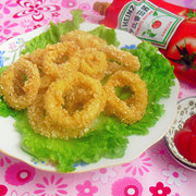 鲜鱿鱼、鸡蛋、面粉、面包糠、胡椒粉、料酒、盐。