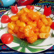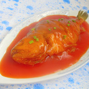 黄花鱼、葱、淀粉、面粉、姜、料酒、花椒、白糖、盐、番茄酱。