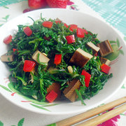 荠菜,、香干、红椒、生抽、糖、香油、烹调油。