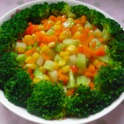 西兰花、红甜椒、青椒、玉米、胡萝卜、盐、鸡精。