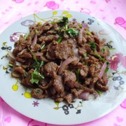 羊肉片、料酒、香菜、洋葱、蛋清、孜然粉、酱油、白糖、盐。