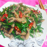 小乌贼、韭菜、红椒、花椒、姜、料酒、胡椒粉。