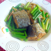 鲅鱼、蒜苔、葱、姜、八角、花椒、酱油、胡椒粉、料酒、白糖、盐。