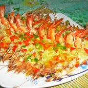 鲜虾、青椒、大蒜、红椒、料酒、鱼露、盐、糖。