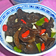 黑木耳、淀粉、枸杞、蒜、青椒、醋、糖、盐、生抽。
