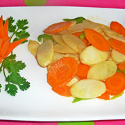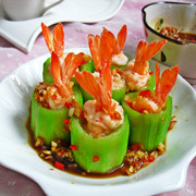 丝瓜、大虾、红椒、蒜、李锦记蒸鱼豉油、糖、食用油。