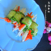 黄瓜、胡萝卜、梨、韩式辣酱、熟芝麻、盐、香油、蒜。