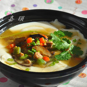 高汤、鸡蛋、胡萝卜、葫芦、面条、熟牛肉、水。