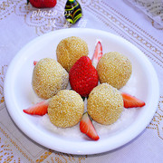磨浆江米面、自制豆沙、玉米油、温水、白糖、枸杞。