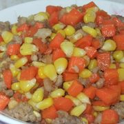 玉米、胡萝卜、三层肉、油、生抽、盐、鸡精。