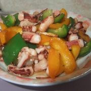 鱿鱼头、彩椒、姜、油、盐、酱油、料酒、鸡精。