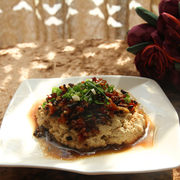 三文鱼、葱末、姜末、蒜末、柠檬汁、黑胡椒粉、鲜贝露、鱼露。