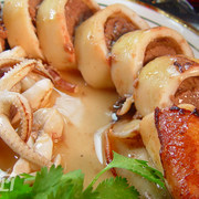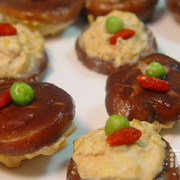 鲜基围虾、水发香菇、鸡蛋清、鸡粉、油、鸡粉。