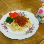 意大利面、胡萝卜、番茄、洋葱、西兰花、尖椒、葱姜蒜、番茄酱、色拉油、黑胡椒、海鲜酱油、糖、盐。